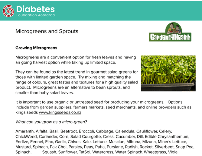 And they are super easy to grow. There are plenty of special containers designed for the job, but as explained in the Gardens4Health Information sheet here, a bag of the right (organic or untreated) seeds, a jar and some fabric or a tray and some seed raising mix...and you're ready to go. They are also super quick, it's Monday and you want a vegetable option for the weekend...put your sprouts on! Sow your microgreens on the windowsill!