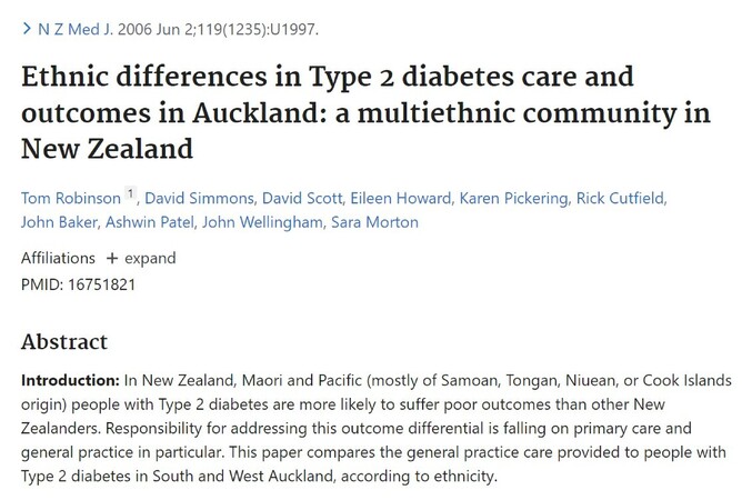 This Paper published in NZ Medical Journal by Tom Robinson from DCSS data available at the time. Māori and Pacific people with diabetes who attend a regular GP had a higher average number of consultations than Europeans and were likely as Europeans to have undergone important regular examinations and investigations. Māori were more likely than Europeans to be on some treatments. However, Māori and Pacific people were more likely to have a range of adverse risk factors for diabetes complications than Europeans, and were not achieving the same outcomes of care in terms of risk factors for diabetes complications.