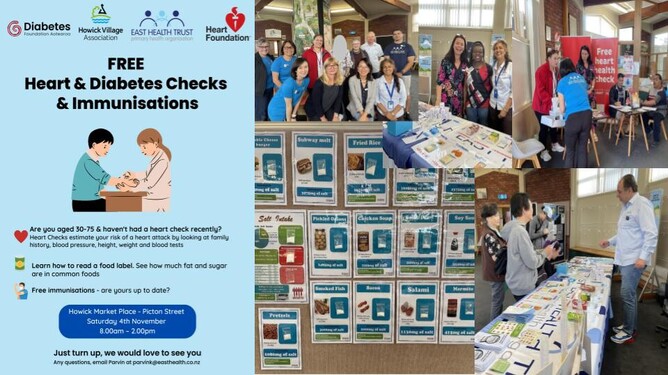 An excellent day was had in the Picton Street Howick Market on Saturday, organised by East Health Trust. Diabetes Foundation Aotearoa Lifestyle Co-ordinator, Diana Anderson was there with the trusty displays and information to share, along with representatives of other organisations including Heart Foundation and the Howick Village Association. Great to see different organisations come together in the community to take healthy messages direct to where people are. This event focused on Heart health, diabetes and immunisation.