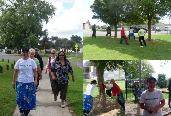 The team gets out in Otara with Timmy whenever they can as part of a collaborative initiative with the Council to increase activity during the day in the local area. Meeting up in the Town centre then heading off for a walk and some stretching. Who knew there was a spacious park-like area behind the rugby club, and the walkway along the river is a great place to escape to for a walk. Push-Play!