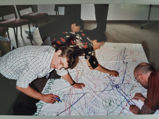 This photograph is from a 2006 event run by Diabetes Projects Trust to bring together different organisations and stakeholders as part of the Lets Beat Diabetes (LBD) project in Counties Manukau. One exercise on the day was to give representatives of the organisations present a marker, and have them draw out how they saw their connections to other organisations on a 5 meter long piece of vinyl. Well...remembering there are only a subset of all the stakeholders present and the drawing is still under construction...the picture speaks for itself. Yes please, a stocktake would be useful. Good luck!