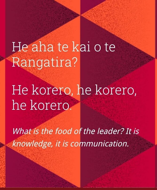 He aha te kai o te Rangatira? He Korero, he korero, he korero - What is the food of the leader? It is knowledge, it is communication