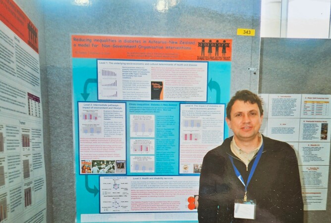 Poster by M Chatterji, Tom Robinson (pictured) and David Scott described as "an analysis based upon a framework developed by the New Zealand Ministry of Health". Presented at conference in Australia.