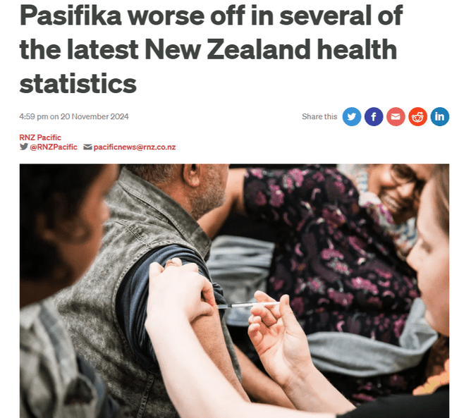 This RNZ article describes some statistics taken from the latest NZ Health survey (covering year July 2023-June 2024, involving 9719 adults/3062 children) showing the situation in relation to health is worse for Pasifika. Actual survey results for more detailed analysis here. This is sobering reading, and shows there is a very long way to go to get to the point where prevention of conditions such as diabetes becomes a feasible possibility and priority for some struggling families.